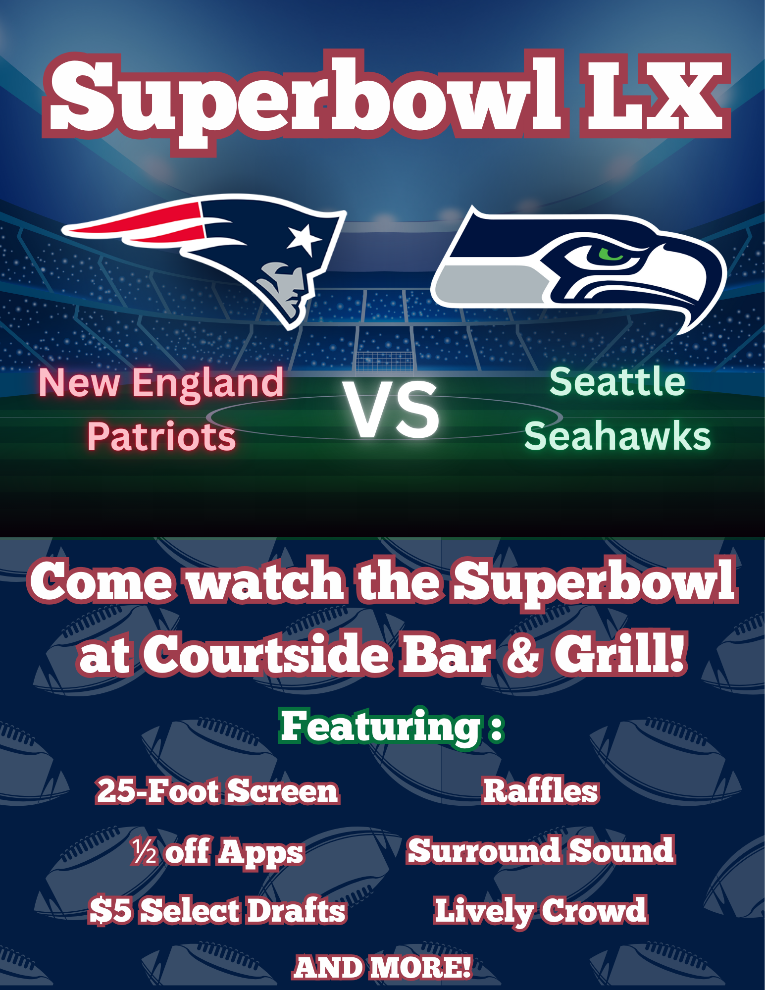 Welcome to Courtside Bar & Grill, your premier entertainment destination. Spanning an impressive 15,000 square feet, our venue is dedicated to providing unparalleled excitement and enjoyment.